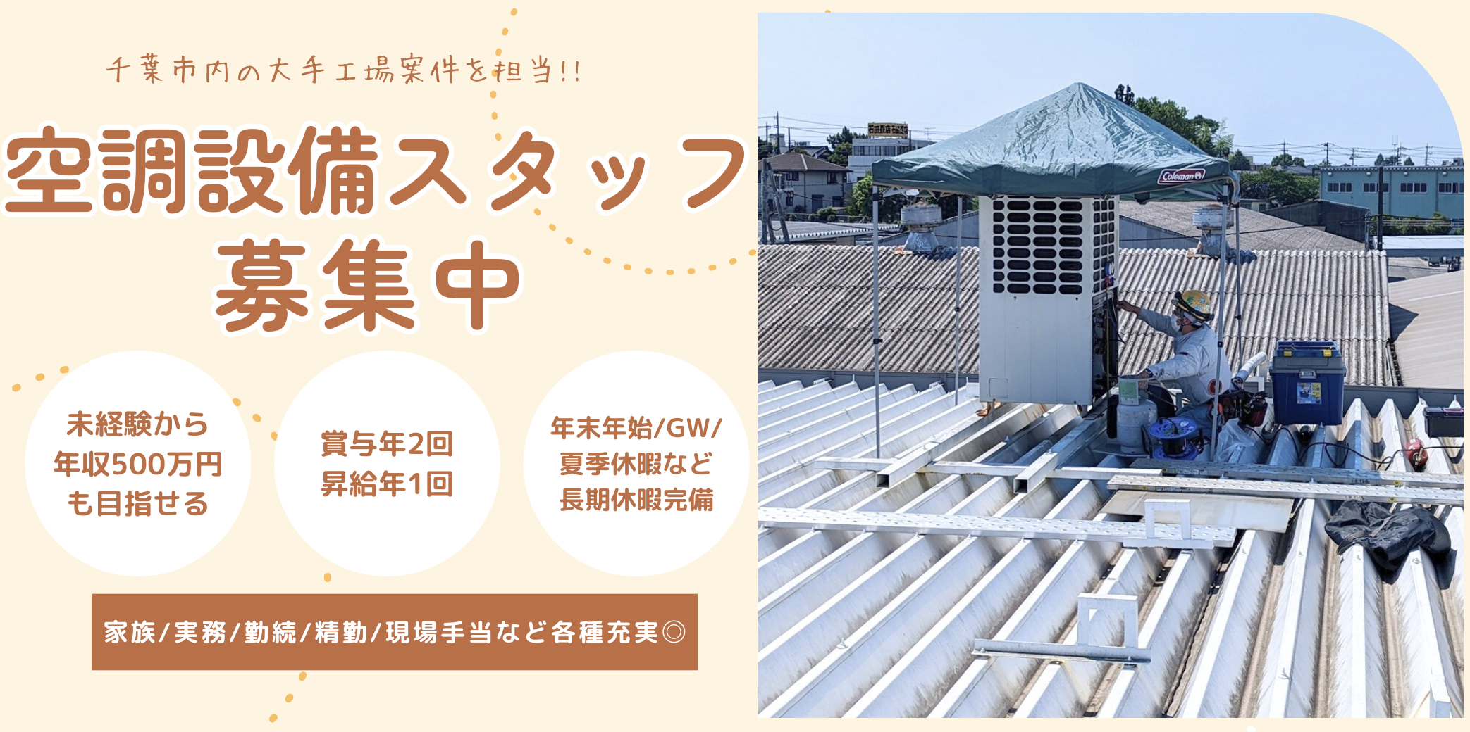 ■勤務エリア 千葉県千葉市 ※JFE構内を中心とした千葉市内の工場がメイン ※転勤なし、長距離移動や出張・泊まり業務は基本なし ■本社 千葉県千葉市中央区南町3-9-4 ■アクセス JR「蘇我駅」より徒歩7分 ※マイカー通勤可 ※駐車場あり